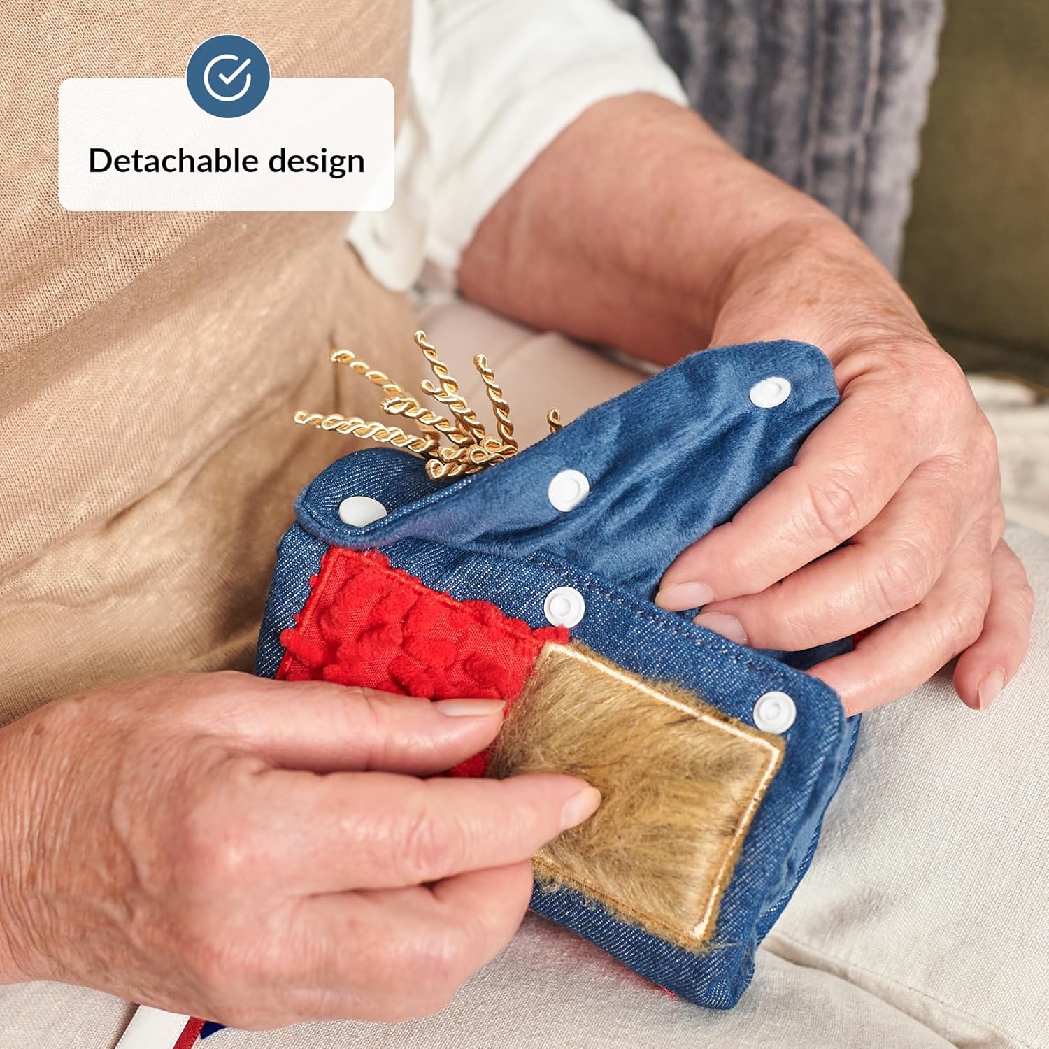 These fidget wrists are carefully designed to include various difficulty levels, making them ideal for seniors in all stages of memory loss. The different activities will help to relieve anxiety and keep hands busy in a safe and comforting way.
