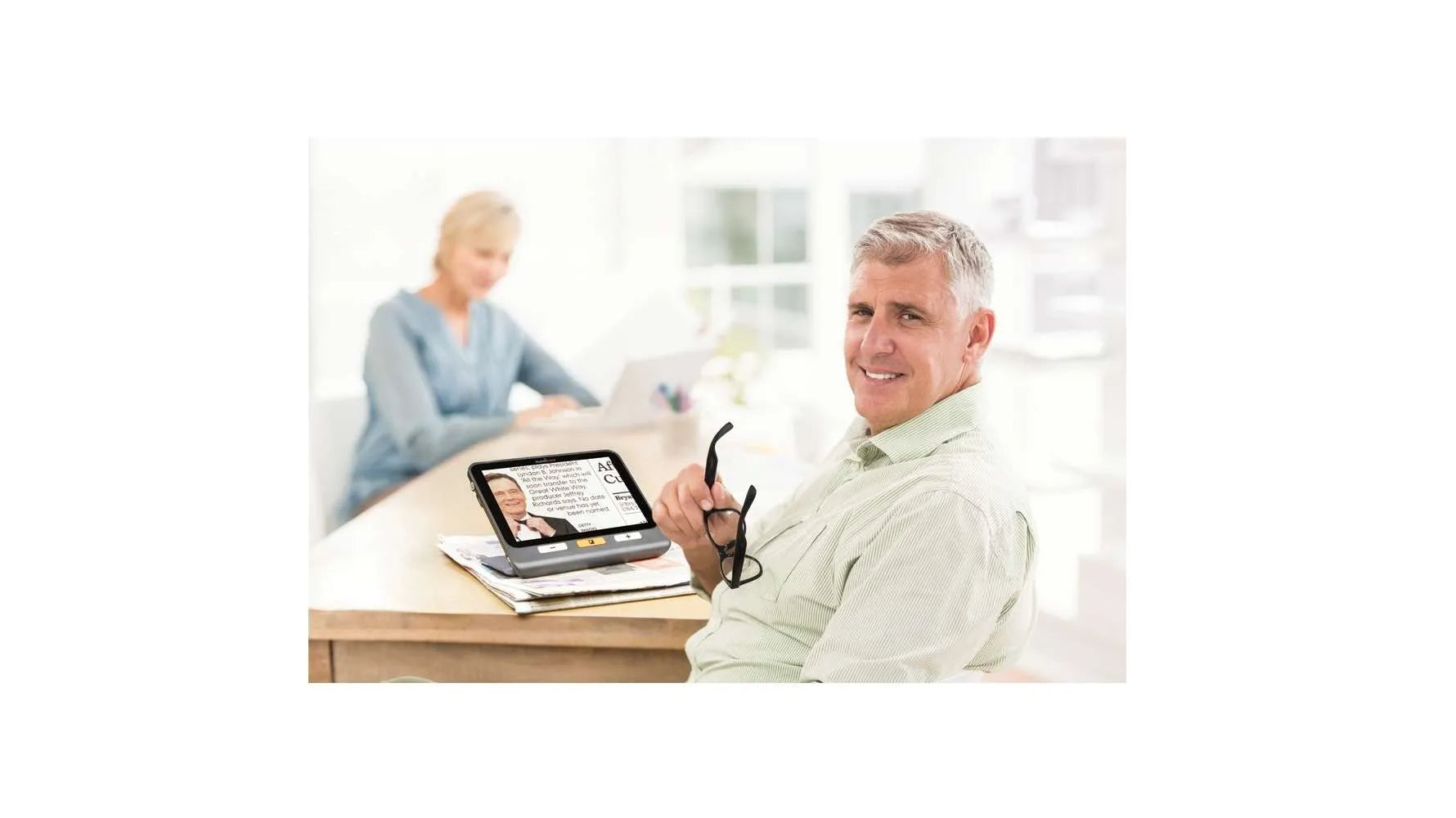The Humanware explorē 8 is a smart, portable, touchscreen portable magnifier with a two-camera system designed for anyone with vision loss who wants a clear, simple way to see printed materials. The unmatched clarity of image with the most powerful camera on the market. This portable digital video magnifier offers an intuitive design that includes one-touch buttons for quick access to key features, making it especially user-friendly for seniors.