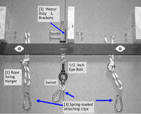 - Includes: 2 Smooth Swingin' Rope Hangers, Swivel, 3 heavy-duty L brackets, 3 attaching clips